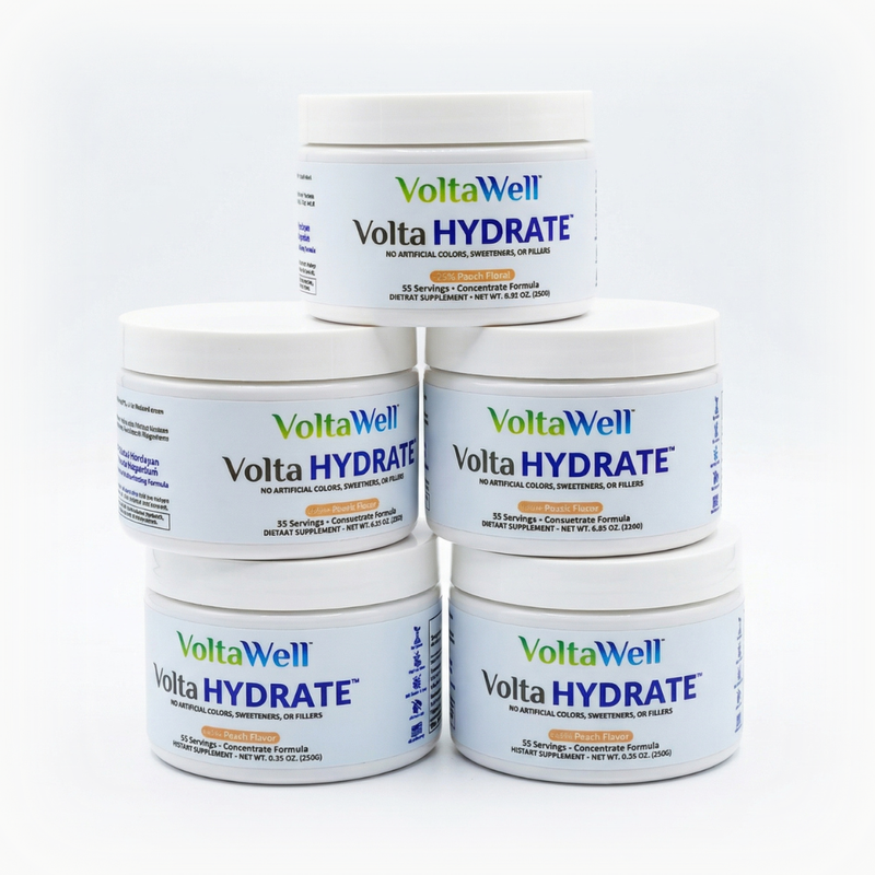 VoltaWell™ helps rebuild the body’s natural electrical balance so water actually works for you — powering faster signaling, cleaner energy, steadier movement, and better overall performance. Hydration isn’t just more water. It’s voltage, structure, and minerals working together.